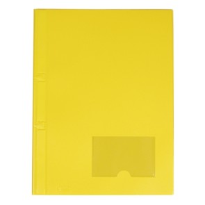 Vorderdeckel, Rücken und Rückendeckel aus vollfarbiger Hartfolie, mit Schlaufen-heftung. Vorderdeckel unten rechts mit einem transp. Einschubfenster, 3-seitig verschweisst, oben offen, mit Daumen- stanzung, für Beschriftungsetikett (je 10 mm vom Rand), mit lose beigefügten Beschriftungseinlagen |