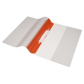 Rückendeckel aus Hartfolie weiß 0,25 mm, Vorderdeckel aus transp. Qualitätsfolie 0,14 mm; mit beweglicher Abheftlasche, Abheftung herausziehbar mit kunststoffummanteltem Splint und weißer Deckleiste, Rückendeckel innen eine Tasche, 100 mm breit, zur Mechanik hin offen. |