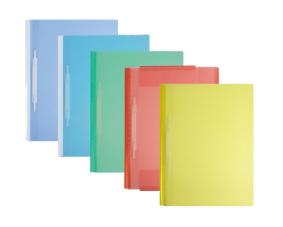 Vorderdeckel und Rückendeckel aus farbigem PP 0,80 mm; Gelenk PVC 0,15 mm; mit beweglicher Abheftung. Abheftung kunststoffummantelter Splint und aufgelegter Deckleiste.