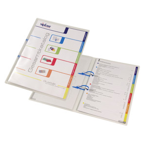 aus matt/transp. PP-Folie, mit der bewährten Sloopy-Abheftung, Vorderdeckel mit einer vollflächigen, transp. Einstecktasche für bedruckte Einleger
